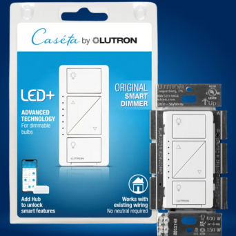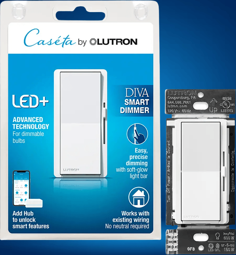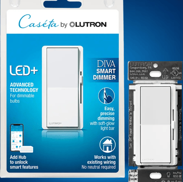 This is Lutron’s original Caseta dimmer design. While I prefer the newer Diva-style Caseta dimmer for its sleek appearance and enhanced features, the original version remains a more budget-friendly option.