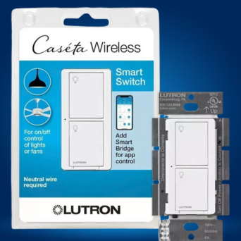 This is the original Caseta switch, featuring a simple and intuitive design with the top button for on and the bottom button for off