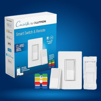 This kit comes with a Lutron Caseta Claro Switch, Paddle Pico Remote, Wall Plate Bracket, and Screwless Plate.
