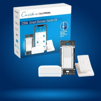 This kit comes with a Lutron Caseta Diva Dimmer, a 3-Button Pico remote, a Pico Pedestal, and a standard Caseta Smart Hub.